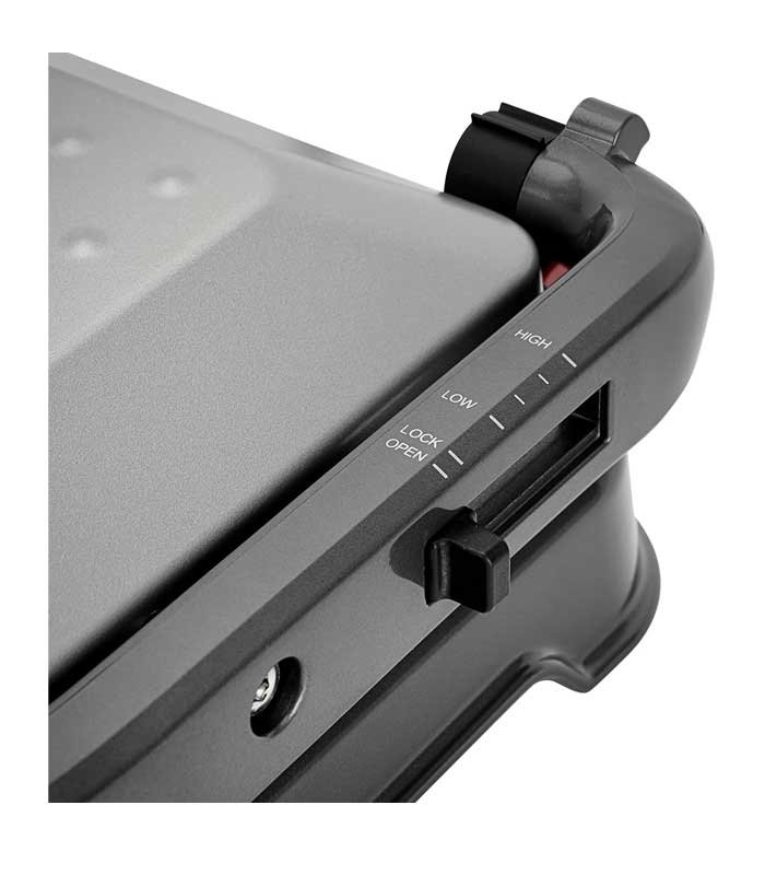 Safety and ease of use are key strengths of the Geepas Electric Grill. The appliance includes a secure locking mechanism that keeps food firmly pressed between the plates, ensuring even cooking on both sides. The cool-touch handle allows safe operation even when the grill is operating at high temperatures, reducing the risk of accidental burns.