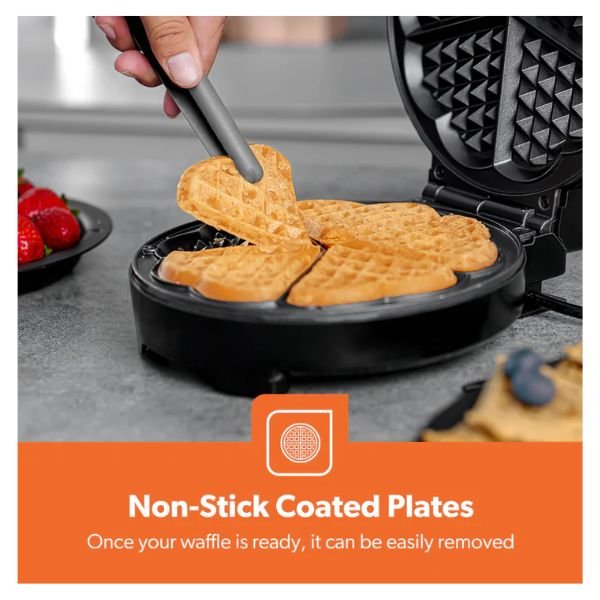 Geepas Heart Waffle Maker – GWM36538 – Ultimate Delightful Perfection for Crispy Golden Waffles