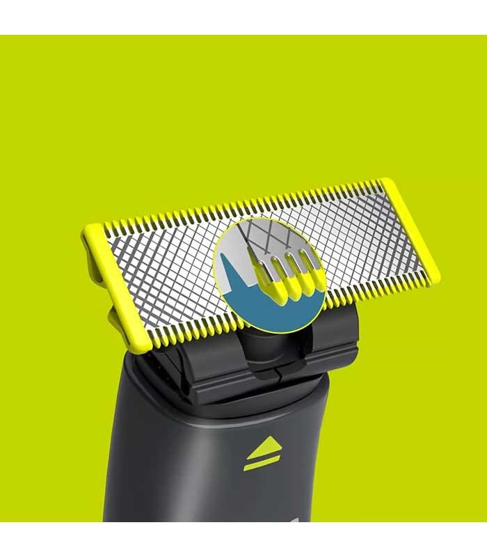 The core of the Philips OneBlade Shaver QP1424/10 is its unique OneBlade technology, which moves at an impressive speed of up to 200 times per second. This fast-moving cutter allows you to trim, edge, and shave hair efficiently without shaving too closely, reducing skin irritation and making grooming safe for sensitive skin. The dual protection system ensures smooth operation while preventing nicks and cuts, so every shave is comfortable, precise, and irritation-free.
