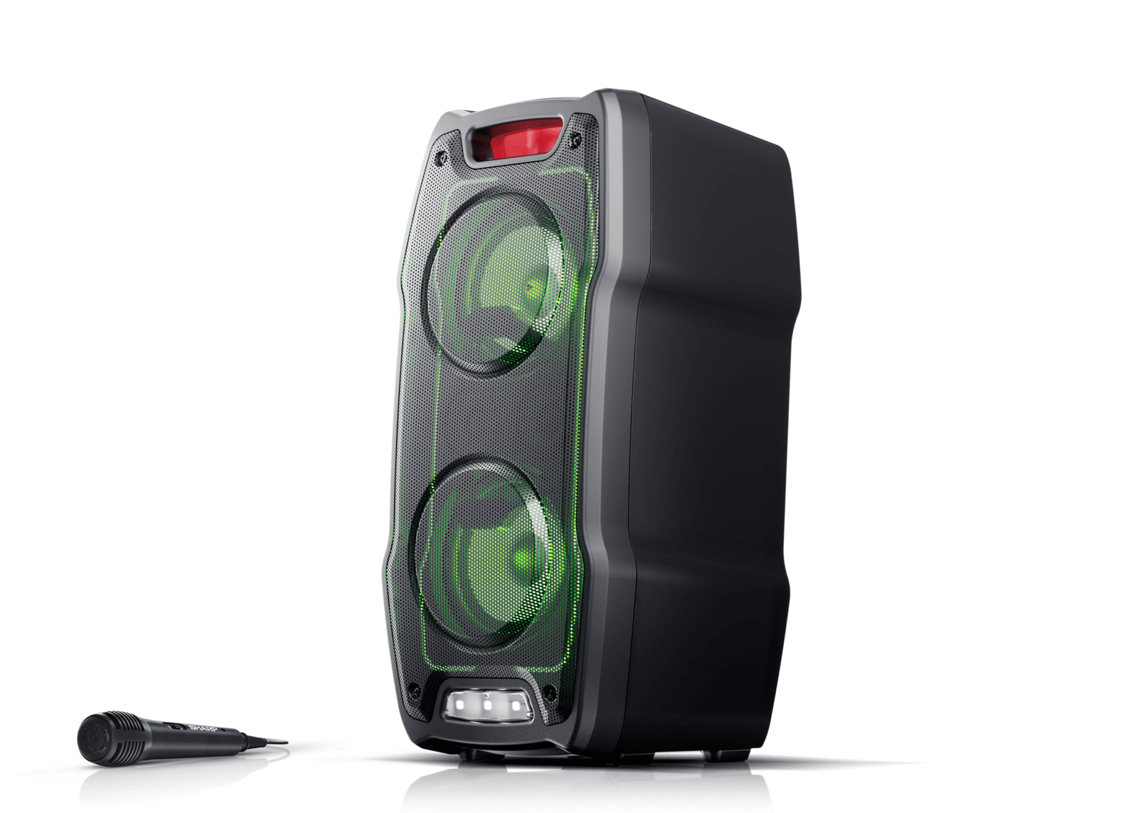 The Sharp Speaker with Mic input includes a wired microphone for instant karaoke fun. Sing along with your favorite tracks or use it to make announcements at events. A guitar input is also available, turning your speaker into a lightweight PA system ideal for small performances or home practice.